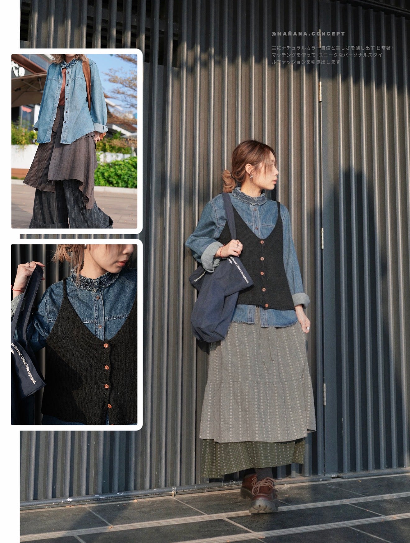 MZ948 RUFFLED COLLAR NECK DENIM SHIRT