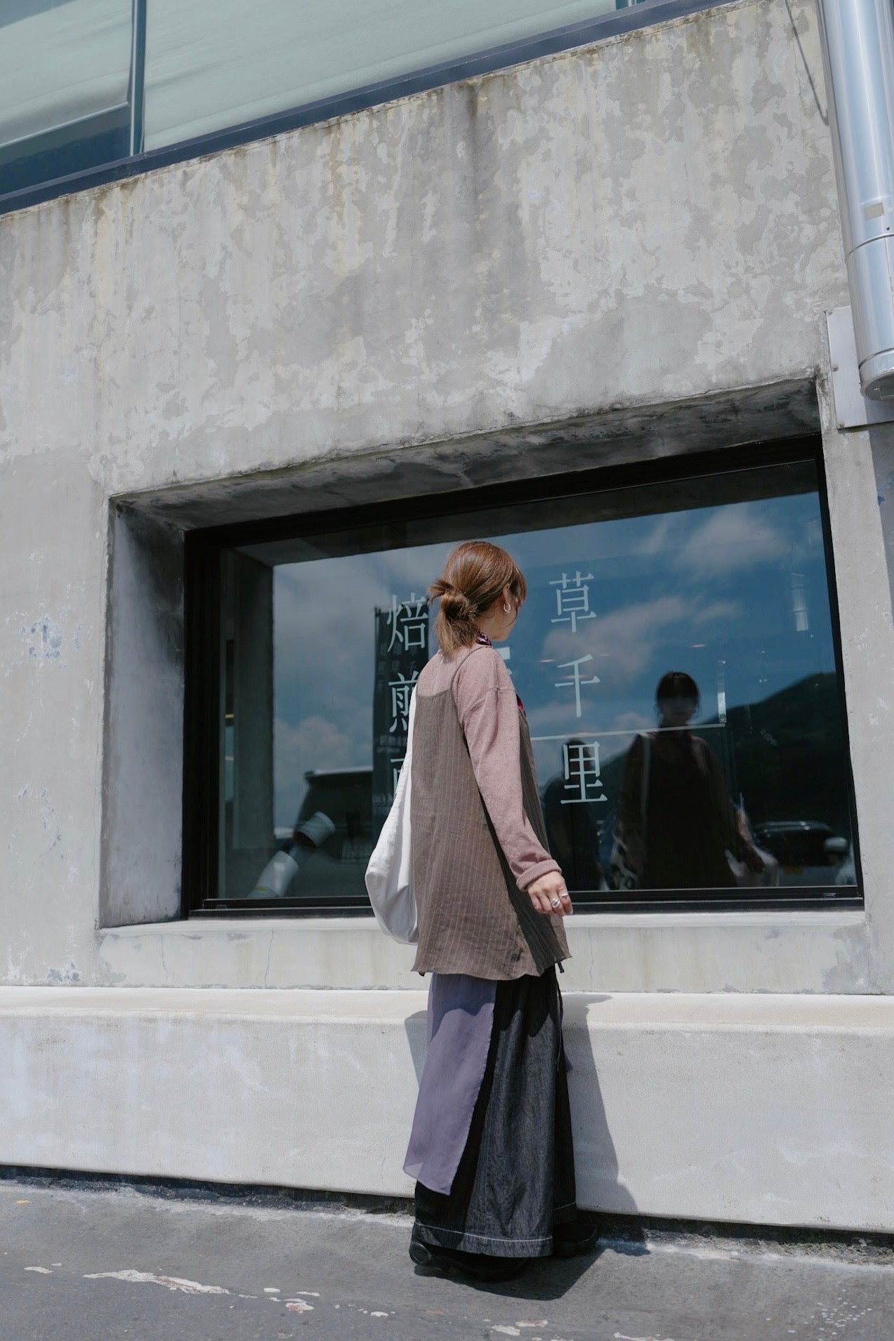 MZ932 HERRINGBONE CROPPED COLLARLESS SHIRT