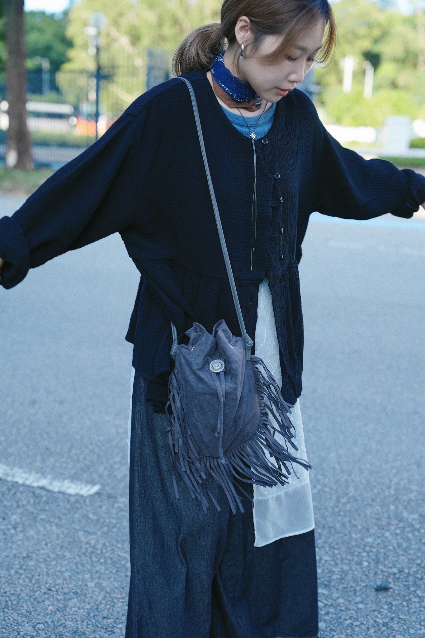 CA912 SLANTED COLLAR LOOSE BLOUSE