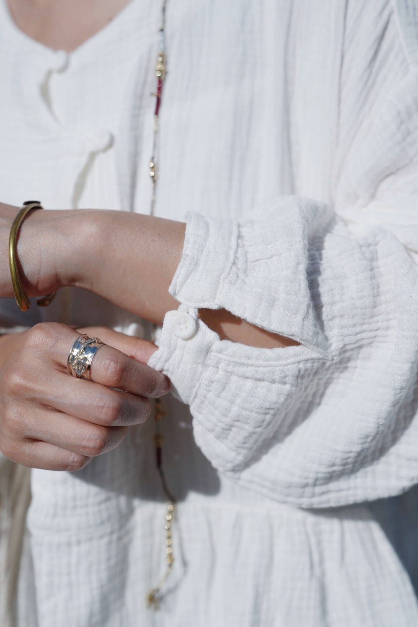 MZ932 HERRINGBONE CROPPED COLLARLESS SHIRT