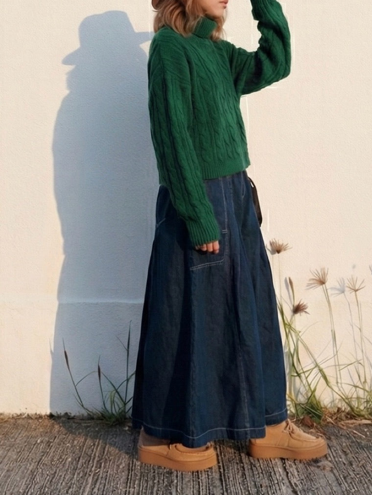 MZ594 CABLE-KNIT TURTLE NECK TOP