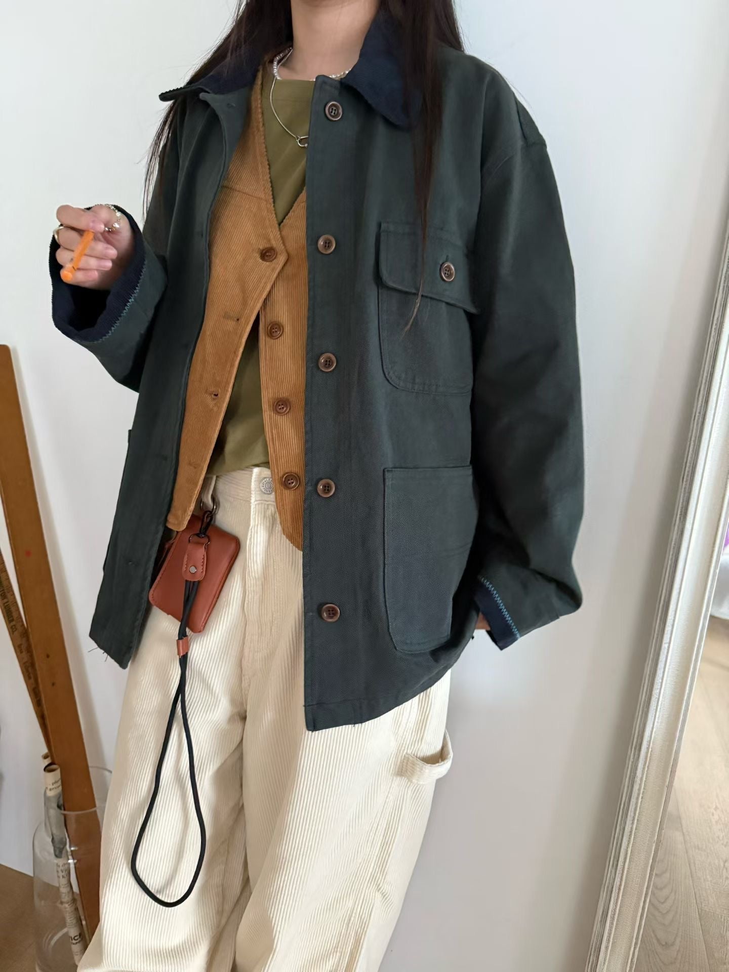 MZ848 CONTRASTED-COLLAR WORKER JACKET