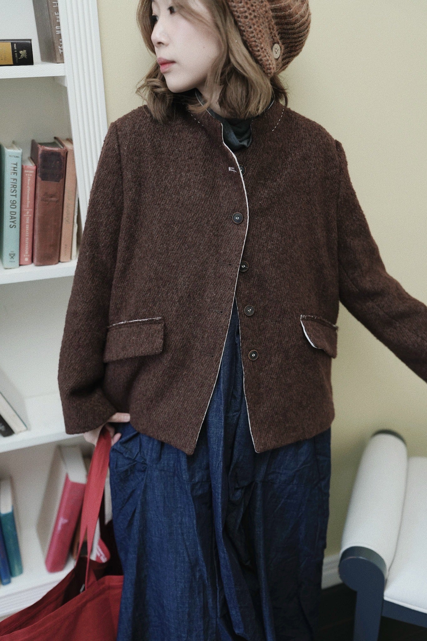 深棕色調 搭配 #很特色的明線