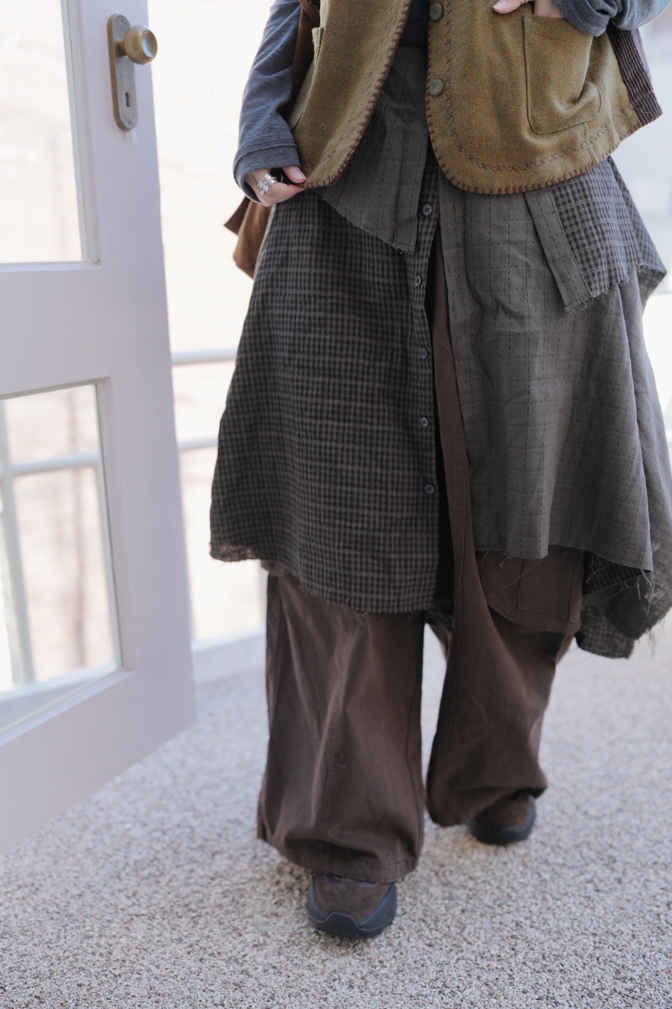 MZ932 HERRINGBONE CROPPED COLLARLESS SHIRT