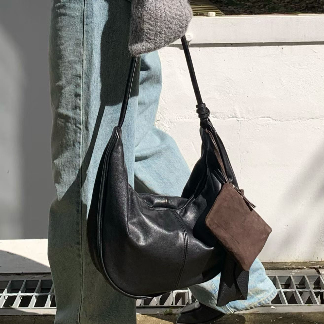 MZ943 ITALIAN LEATHER HANDMADE CURVE SHOULDER BAG