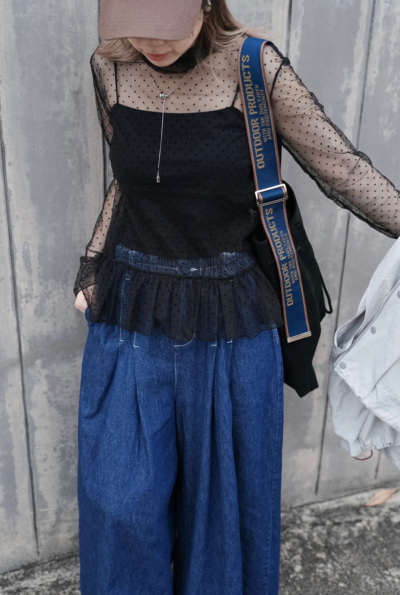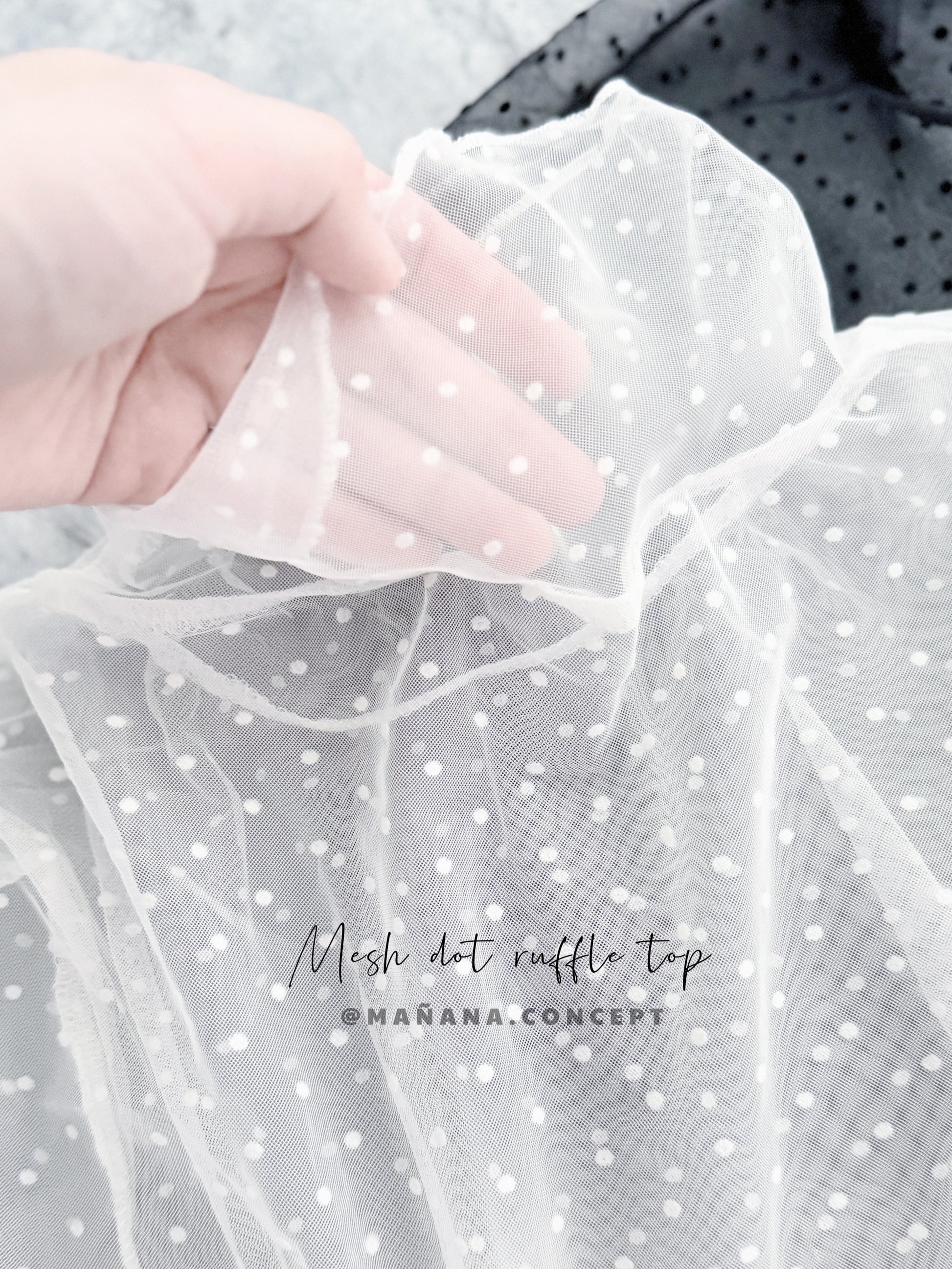 MZ978 MESH DOT RUFFLE TOP