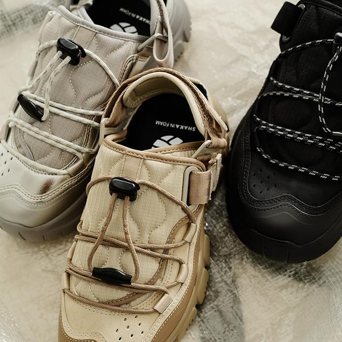 鞋面配上夾綿絎縫並用拉繩固定,戶外感設計之餘